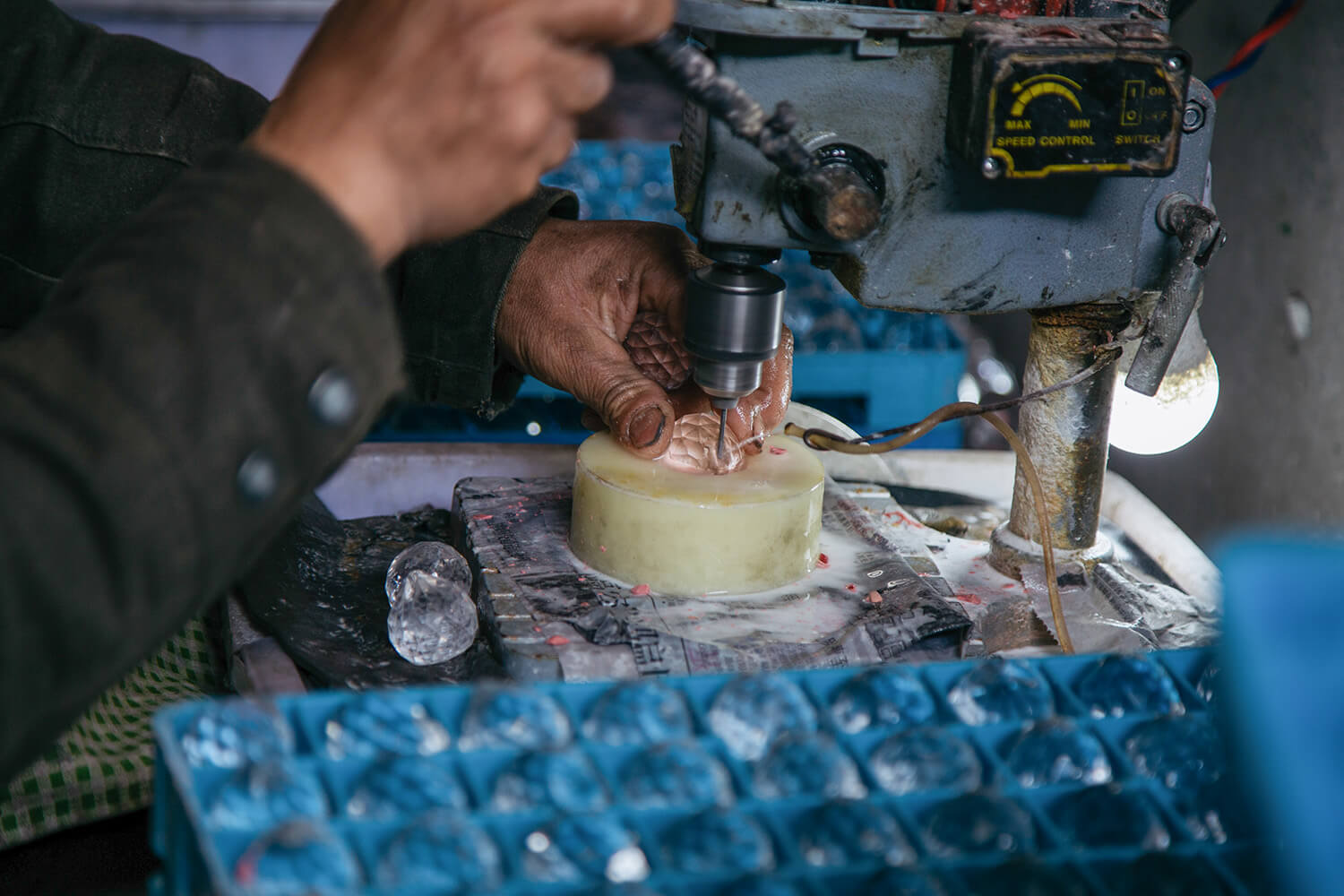 One such company is the Fengfei Crystal Ball Factory, a lighting company established by Fenghuang-born entrepreneurs. Until 2012, Fengfei was based in eastern China’s Zhejiang province, but after the provincial government launched a crackdown on dust-emitting small-scale workshops, the company moved, first to the southwestern province of Guizhou, and later to Fenghuang, after the latter incentivized locally born entrepreneurs to relocate their businesses to their hometowns. Fengfei currently employs 600 local workers, 85 percent of whom hail from impoverished households in Fenghuang.