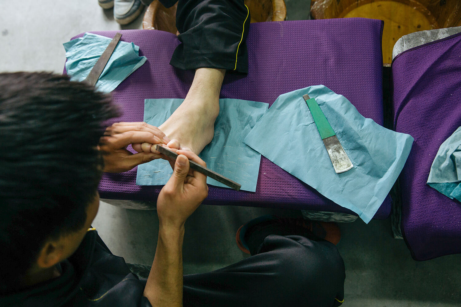 But even after receiving his vocational certificate, Tang says he struggled to reconcile his new profession with his self-image as a man’s man. “It was embarrassing to wash other people’s feet,” he recalls. “I thought it wasn’t work fit for a man.” Instead, he got a factory job in the southeastern province of Fujian, manufacturing hardware fittings. The job quickly fizzled out, however, and he soon found himself back in his hometown.
